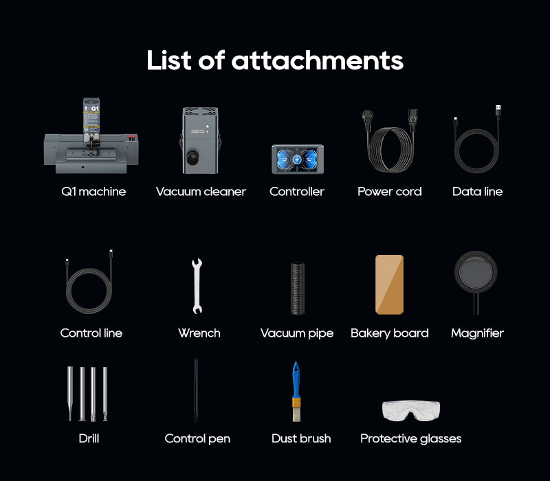 Drill Bits Included: 3x CPU Bits; 1x Hard Disk Bit; 1x Touch IC Bits; 1x Lens Bit