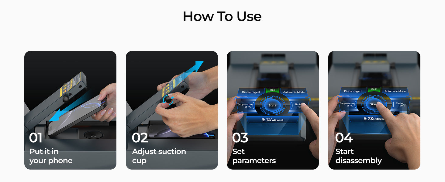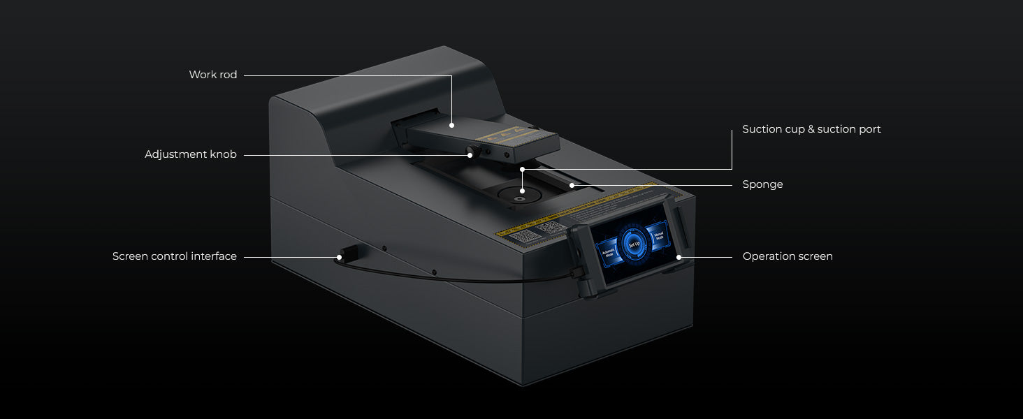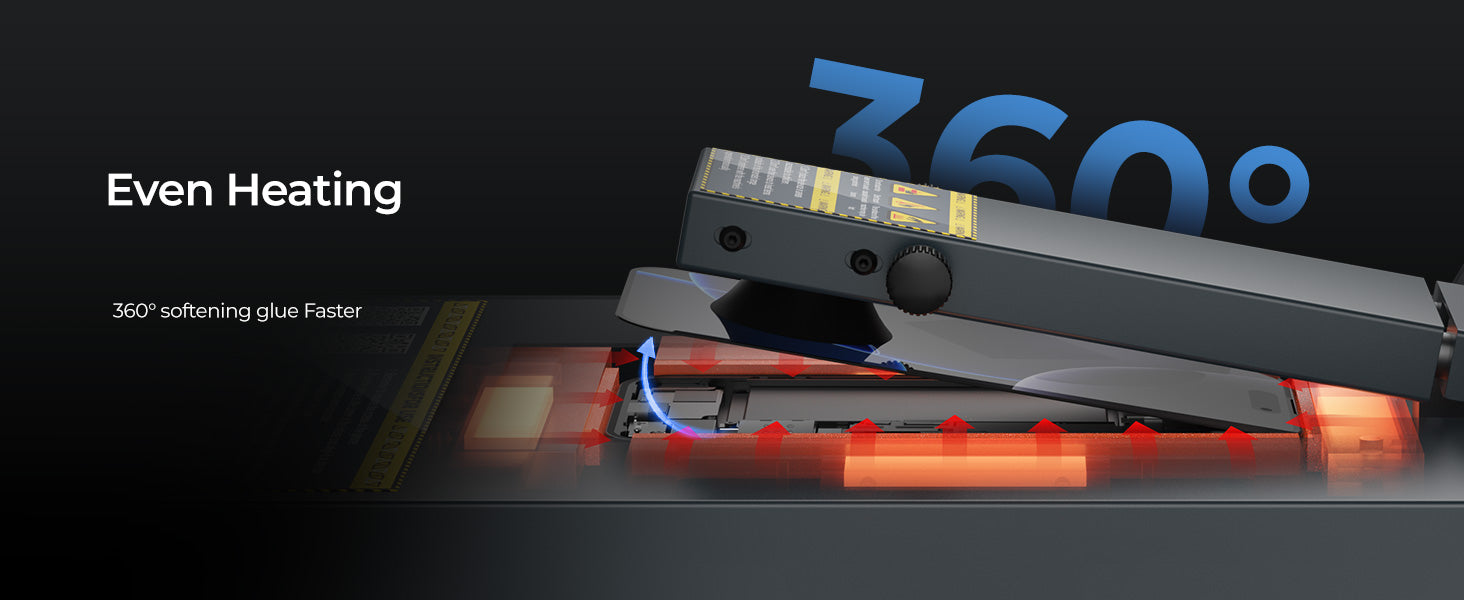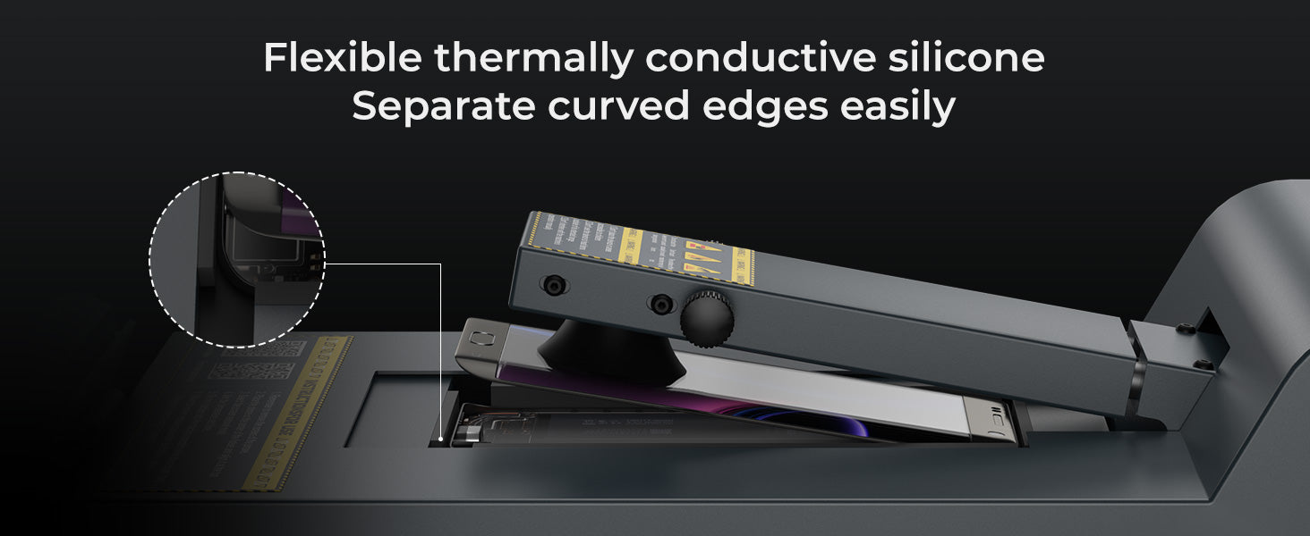 Super Strong Vacuum Adsorption: equipped with 6-point adaptive suction cups and dynamic air pressure adjustment function, firmly grasps the curved/straight screen (6-7.2 inches), and prevents displacement during heating and glass shattering.