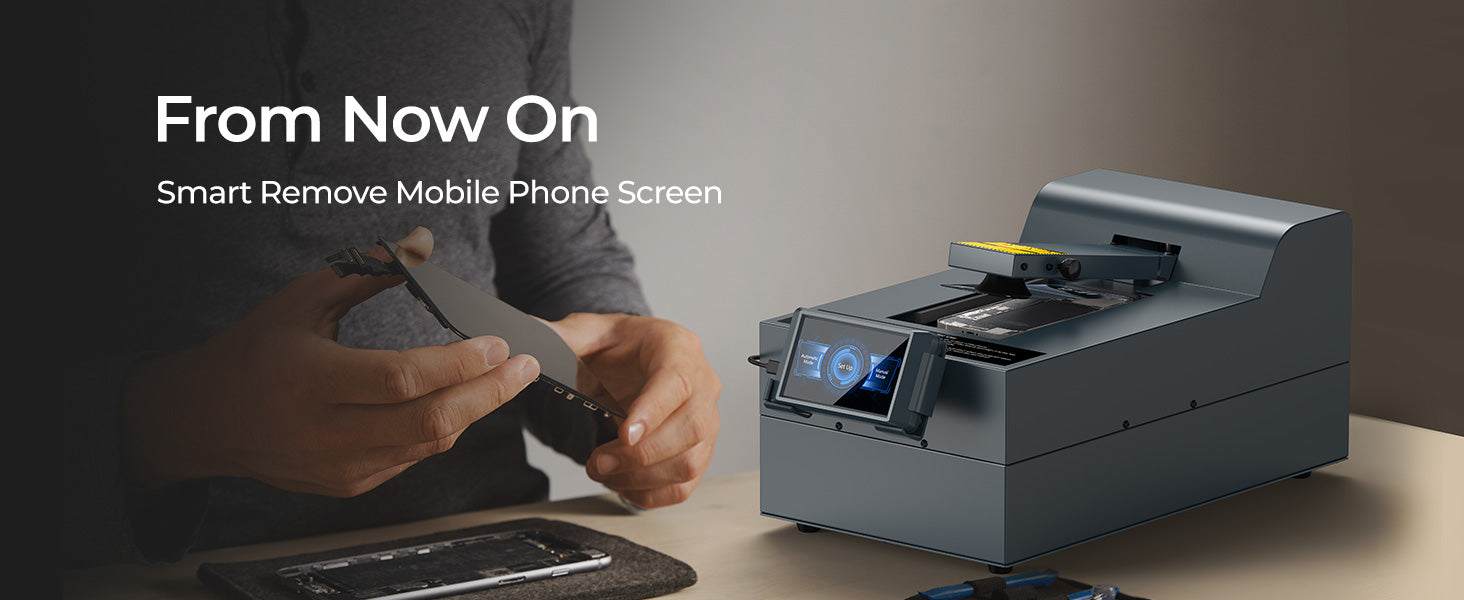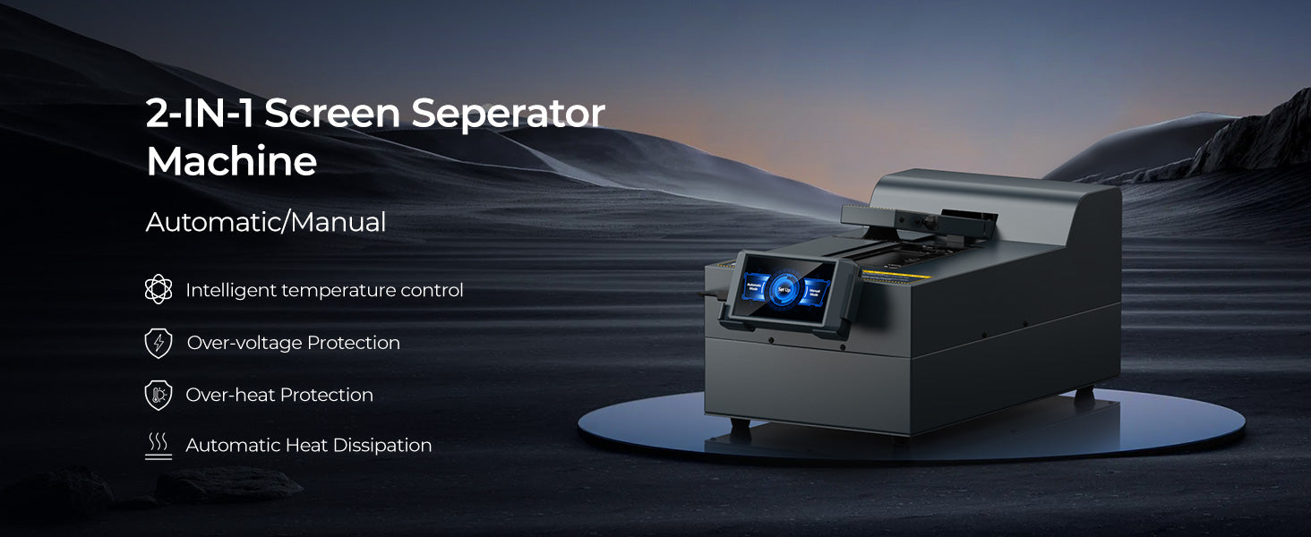 2-IN-1 Screen Separator Machine: Supports one-key switching between automatic mode (AI guides novice operation) and manual mode (customised temperature/time to meet the needs of professionals), adapting to regular or special model repair scenarios.