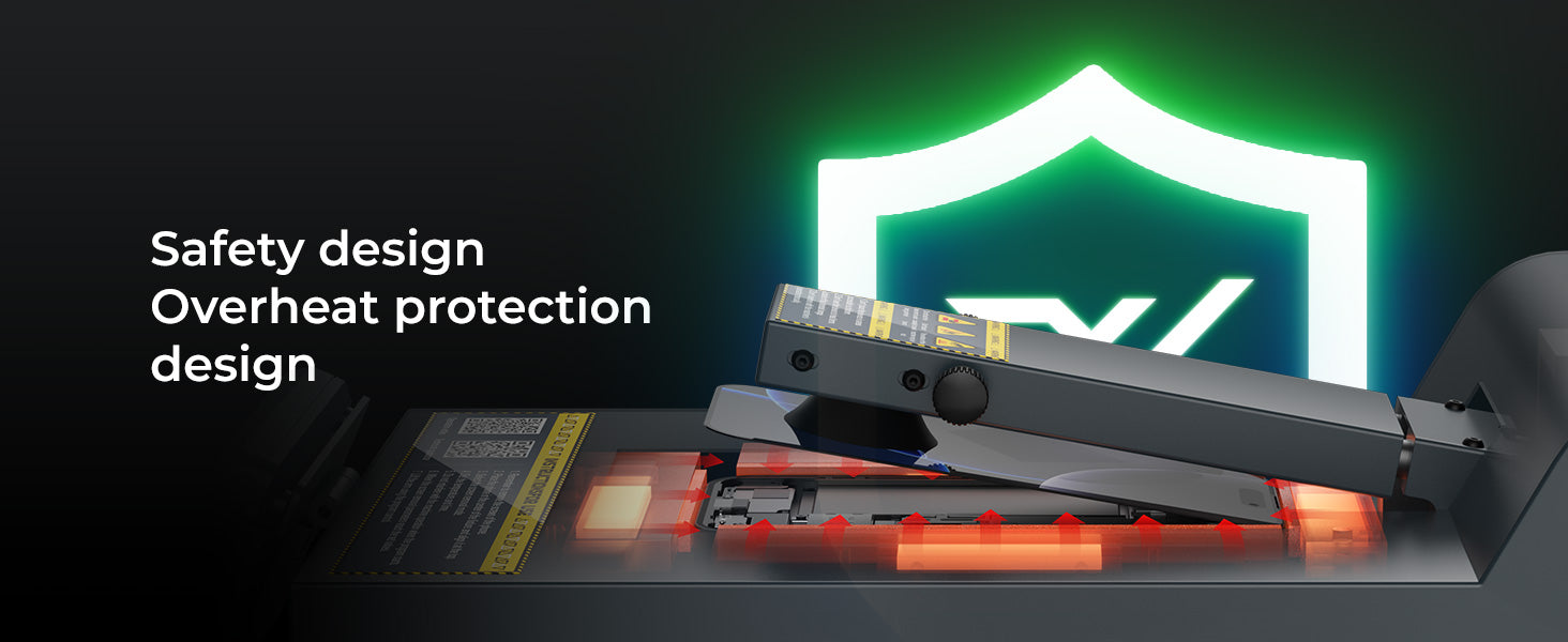 Dual-Zone Heating Control: Independent upper and lower heating zones and a built-in PID algorithm ensure ±1°C constant temperature stability, automatic power-off in case of abnormal temperature, preventing damage to the screen or components.