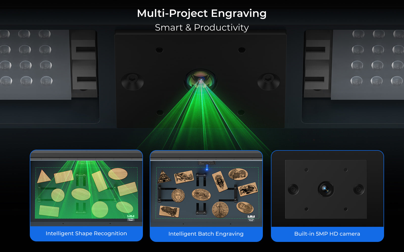 Cutting and Engraving: Speeds up to 24,000mm/s, dual 10W outputs, cuts 0.8mm of wood at a time, 0.06*0.08mm laser spot for more precise engraving. Install the Xwitzeal Creative Space and you can cut and engrave anything.